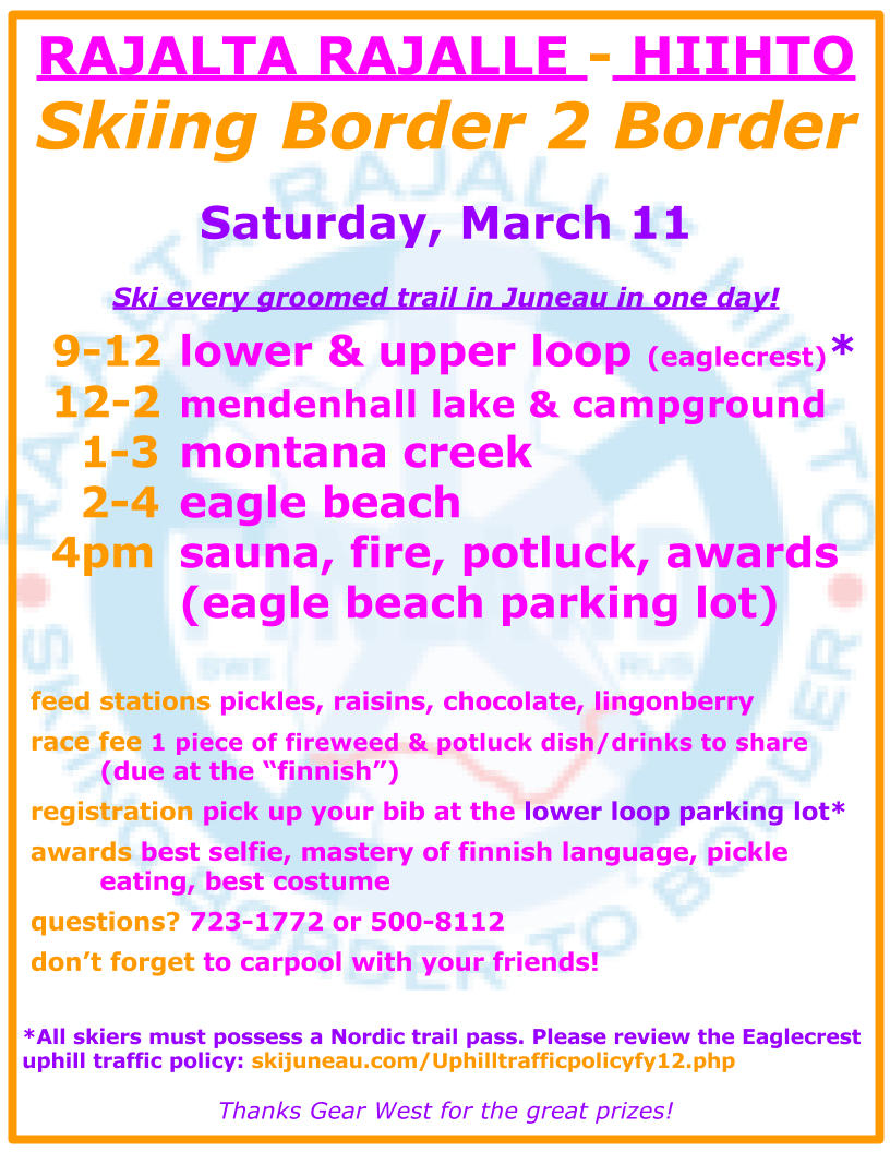 Border 2 Border Saturday March 11- Ski all Juneau trails in 1 day!