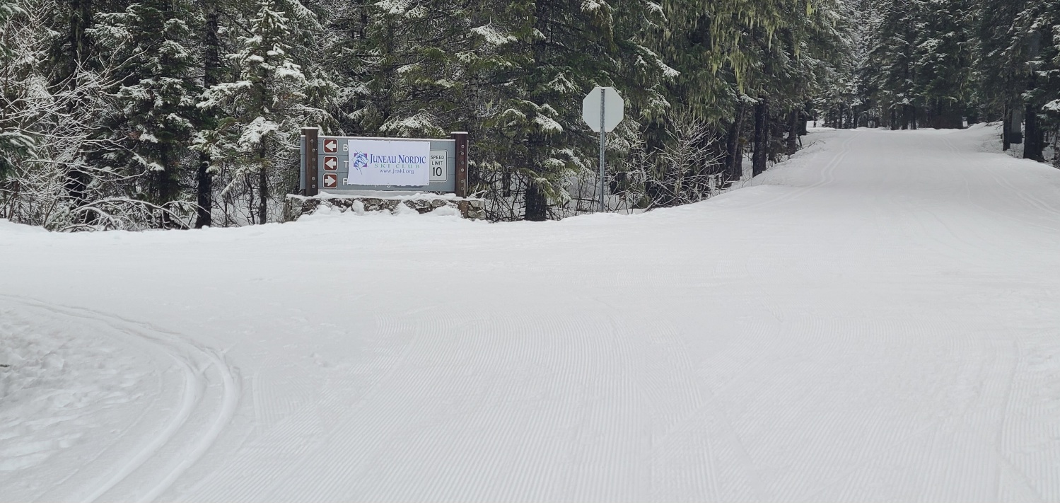 Campground Groomed – 9:30 amFeb 23, 2024 | Mendenhall CampgroundGroimed for skate. Classic is in great shape from yesterday afternoon’s groom. A dash of fresh snow. The snow is drier than it has been lately. Should be great skiing today. JT