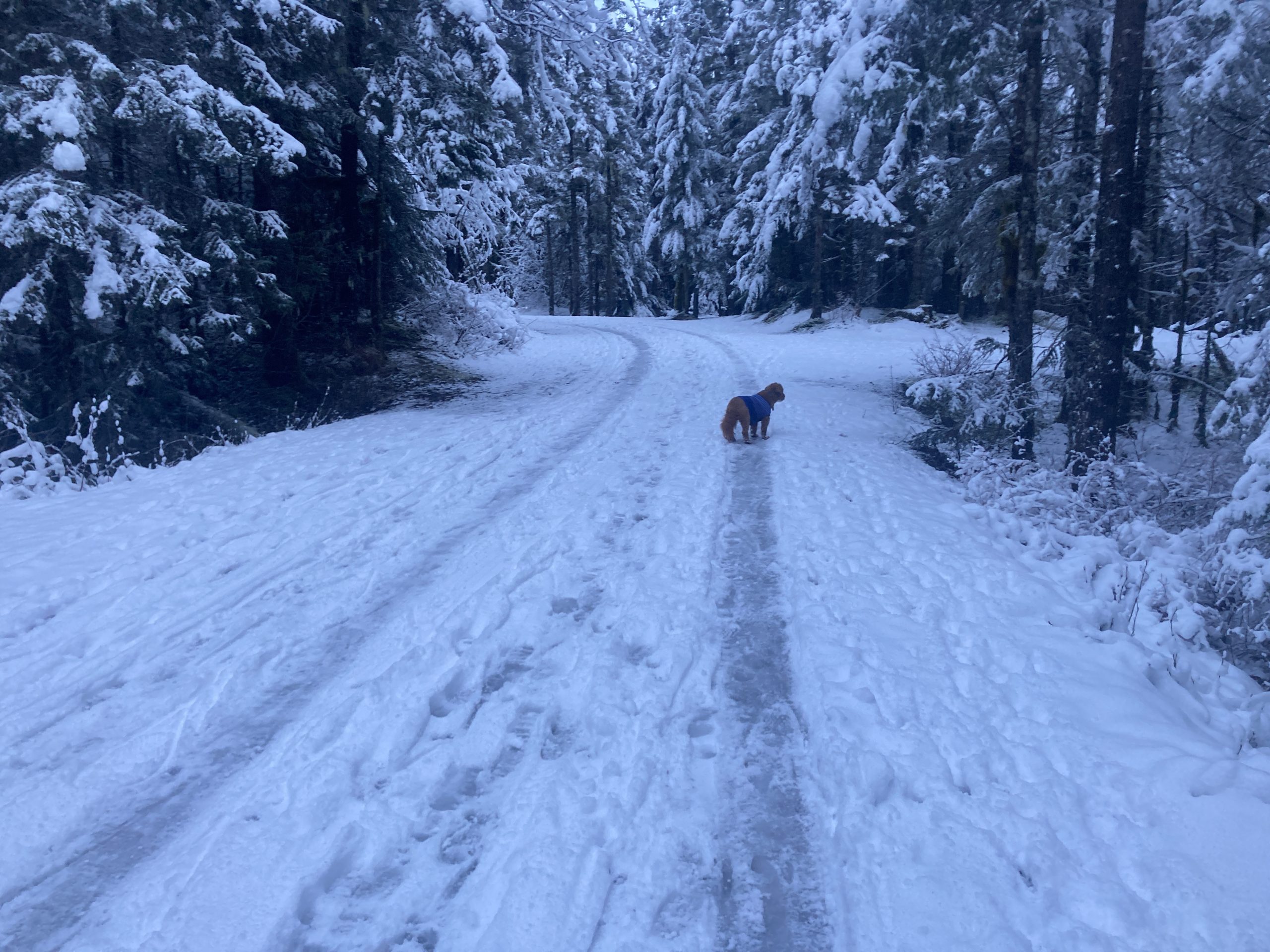 Ok – campground trail had truck tire tracks – it worked for me. Very nice skiing with dog, no wind, no rain, and five or so inches of fresh snow yielded 8/10 skiing. May be the first and last day of Dec when looking at this week’s forecast.