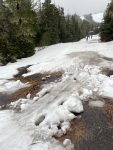 Exposed dirt, rocks, and running water on most of the trail. An expert skier could make their way around a short counter clockwise loop starting from the lodge trailhead and have the ability to make split second decisions going downhill.