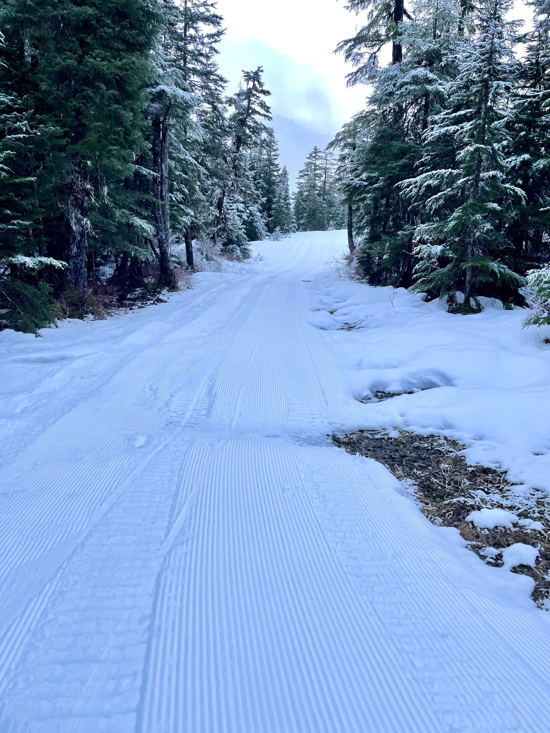 Packed and groomed on hardened trail out to the meadow. No classic track. Recommended for intermediate and above skiers. Meadow is rough going and has more exposed hazards. Forest trail heading back from meadow is packed but not groomed. A few more hazards but manageable. Use caution! Thank you to JNSC volunteers for packing and grooming ❤️