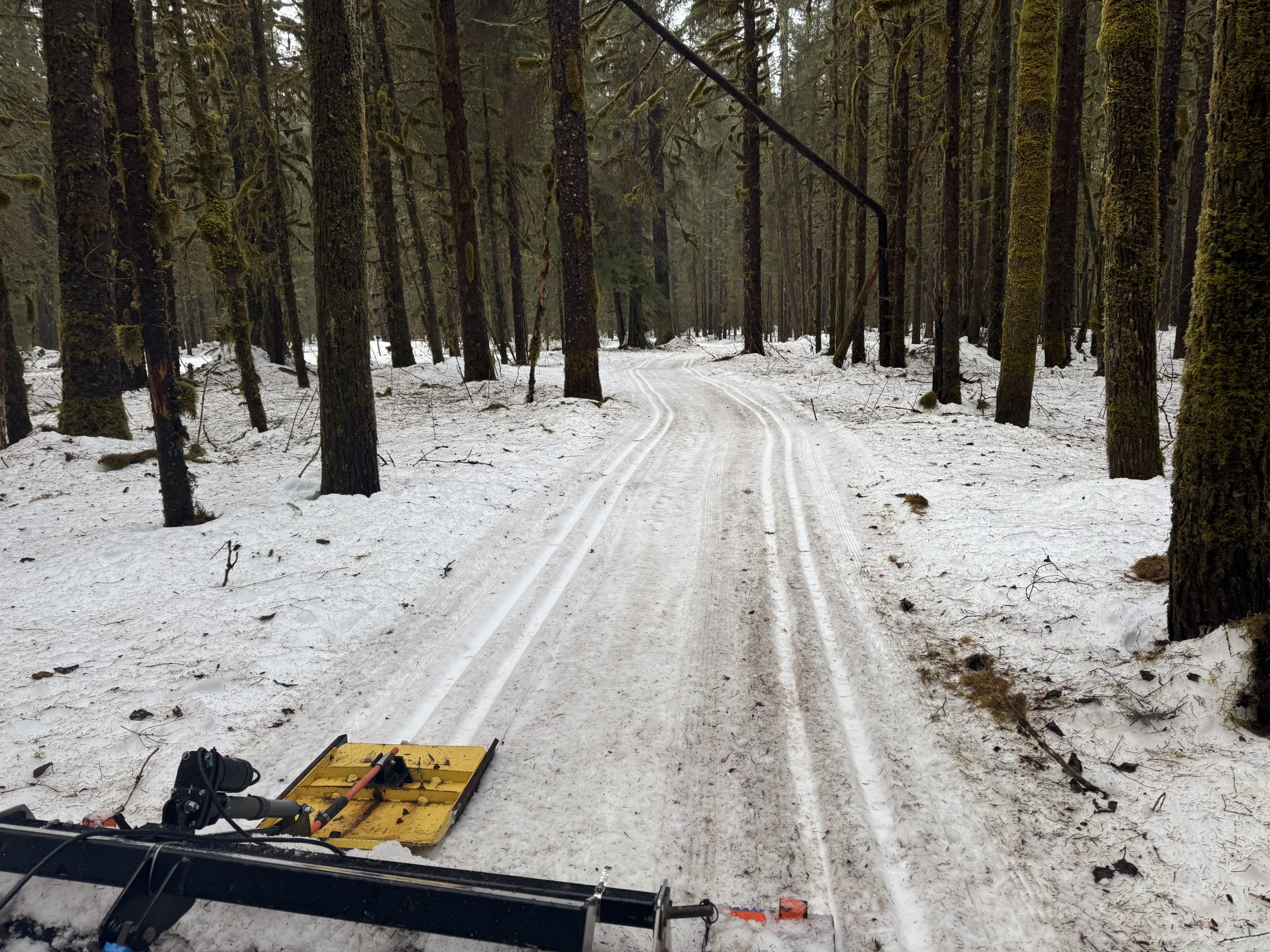 Despite a certified organic rating from the prolific Sphagnum and needle fall, that little Ginzu did some scraping and burying and the two trails across the highway turned out quite skiable. The photo shows the classic-only tracks around the backside of the Methodist Camp.