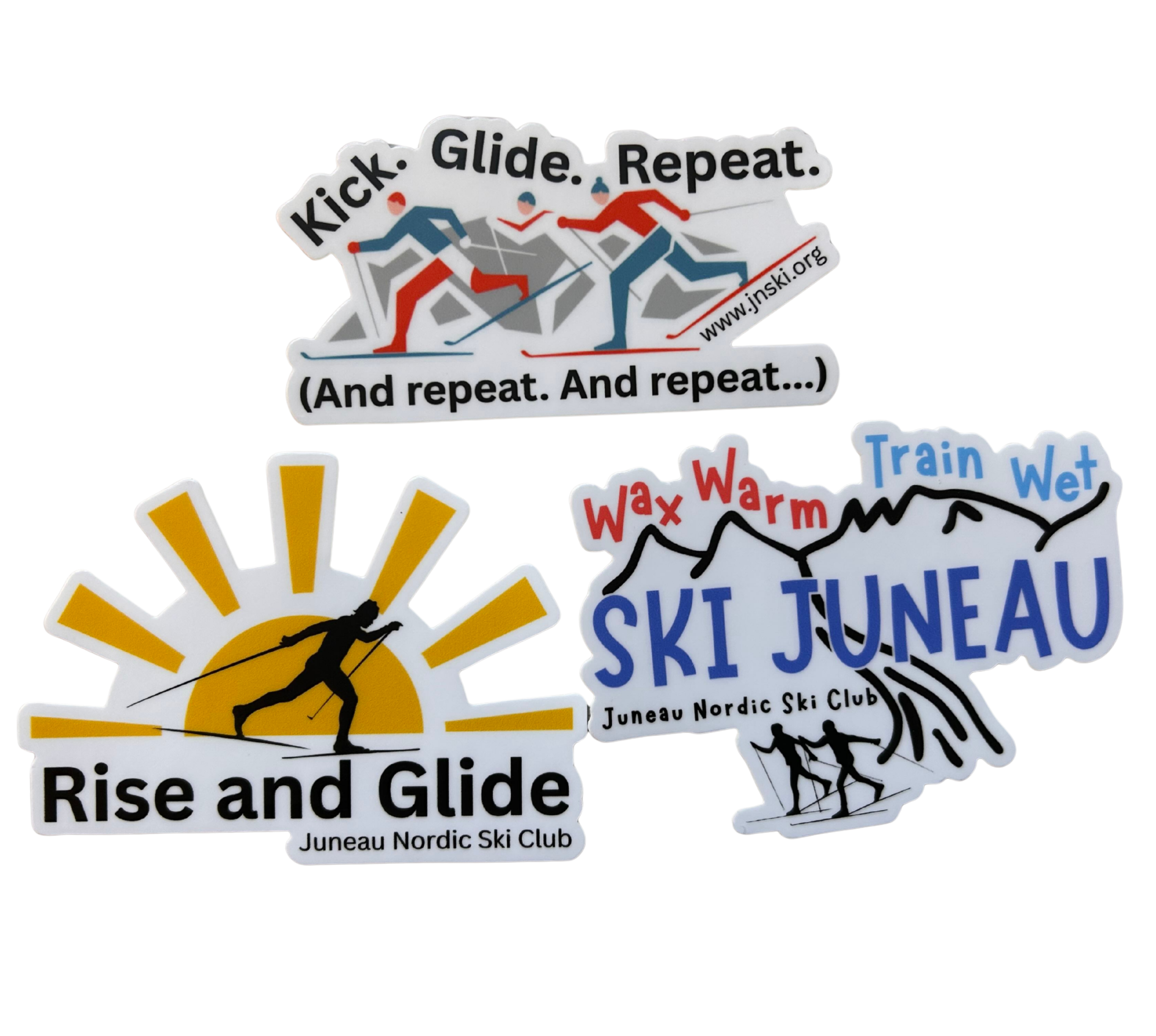Take the Juneau Nordic Ski Club with you wherever you go. Our 25/26 stickers are perfect for water bottles, laptops, car bumpers….even clothes! Please enter the amount owed based on quantity pricing below, and tell us in your note field at checkout which sticker(s) you are ordering.