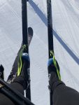 The upper loop is phenomenal this morning! Your Nordic pass gives you a ride up Hooter. All you need is a string or strap from your ski to your boot it leg. You can give the lift operator a thumbs down to request that they slow it for you. Then easy traverse over to the Black Bear chair and the upper loop.