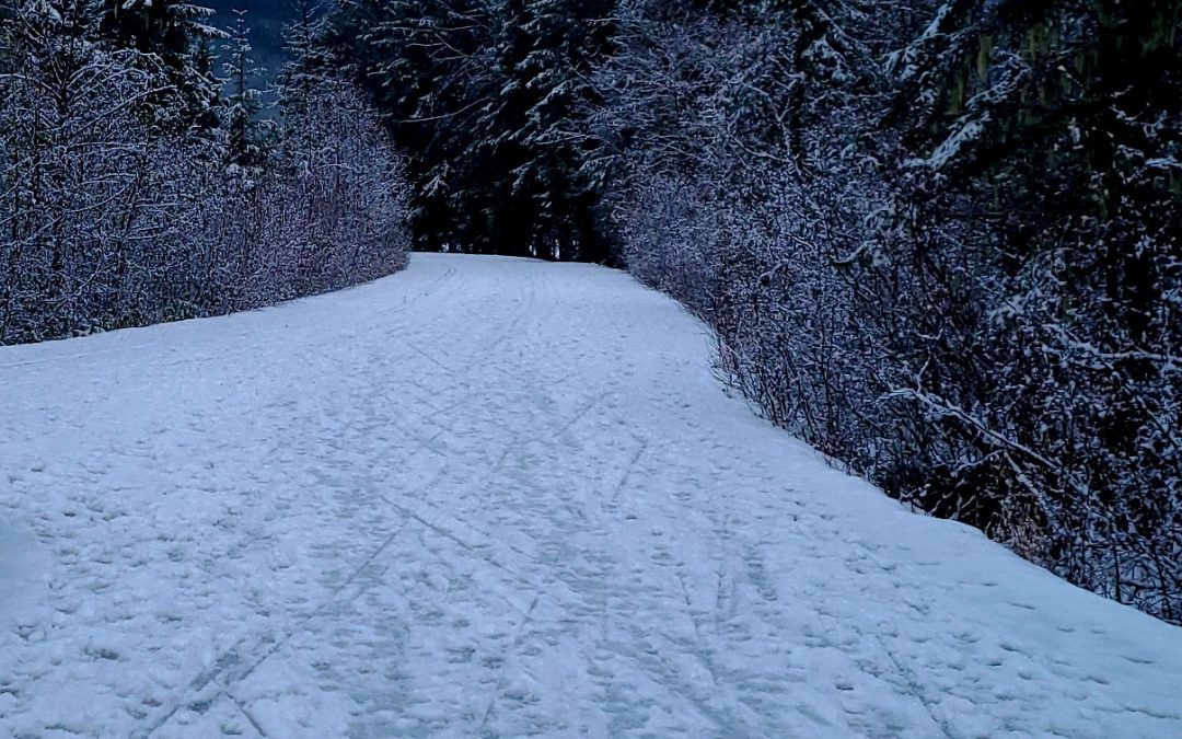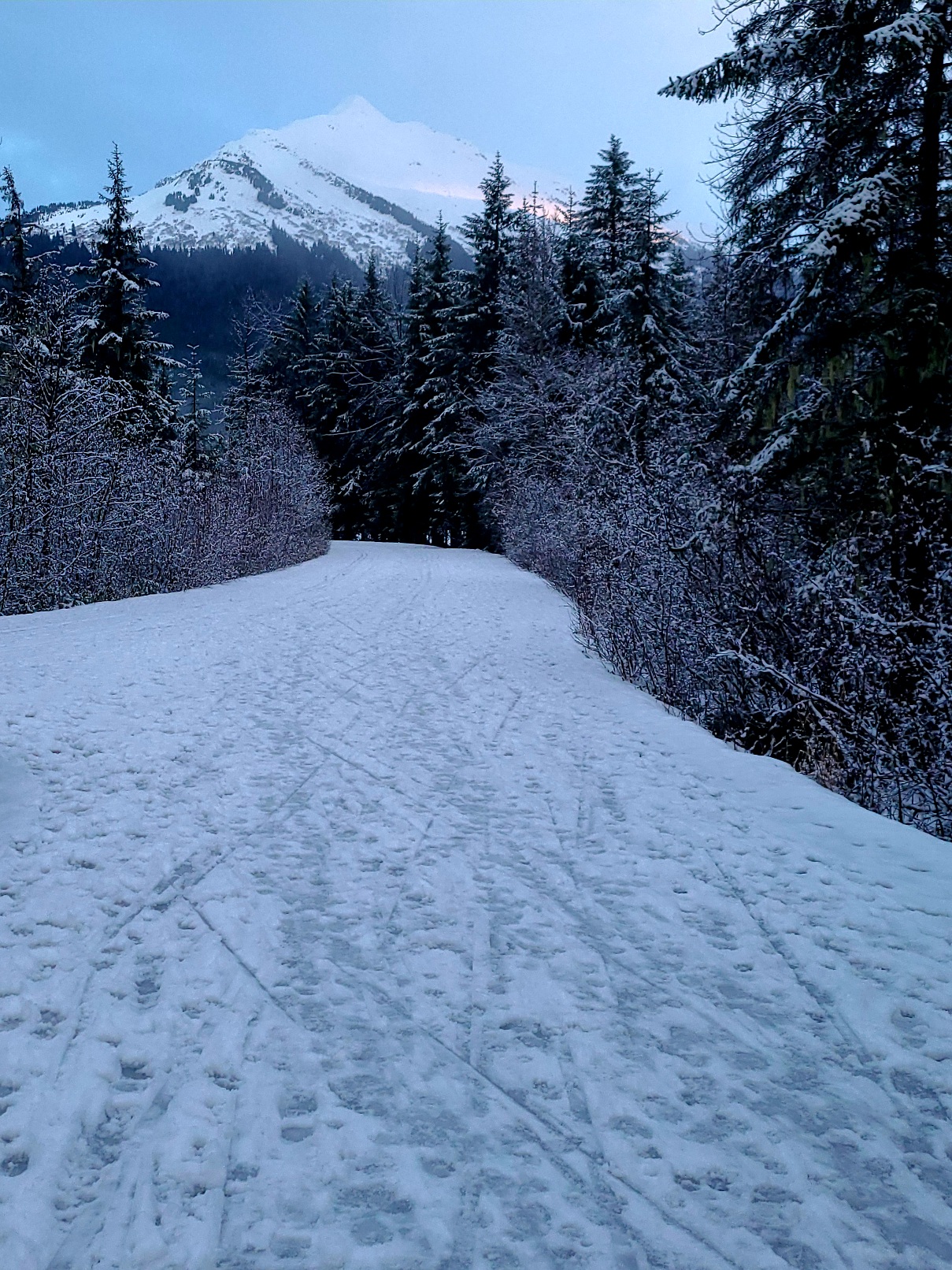Saturday Campground-No Grooming 9amJan 7, 2023 | Mendenhall CampgroundJust not enough snow to groom. There’s an inch or so of soft snow that’s on top of the icy base. It’s skateable but a little rough. 32 degrees.