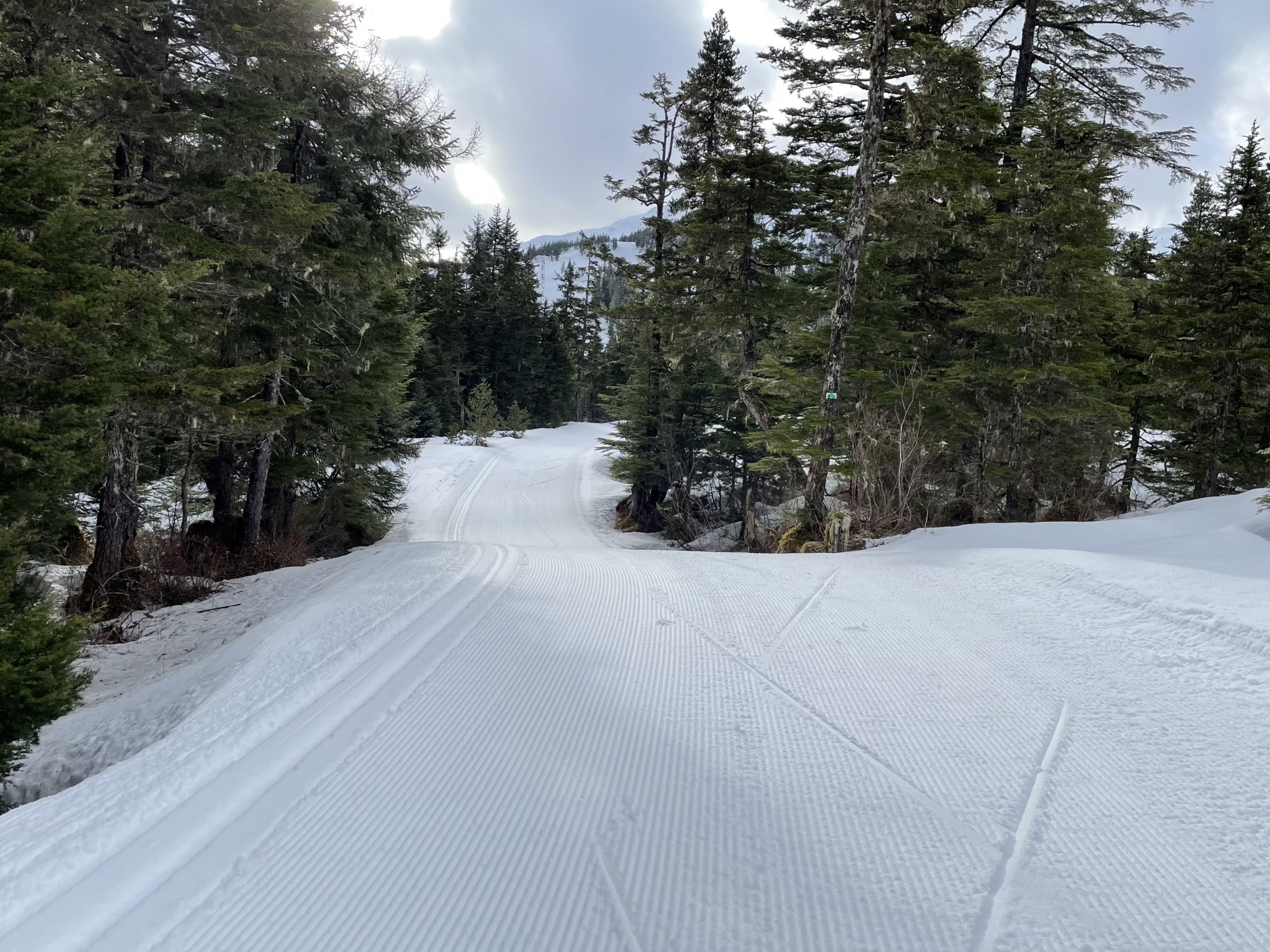 Upper and lower loop trails nicely groomedMar 4, 2022 | EaglecrestBeautiful corduroy for skate skiing! Lower classic track is not as ideal. Watch for drop offs on the side. Some route changes on lower trails. Still ~6km.